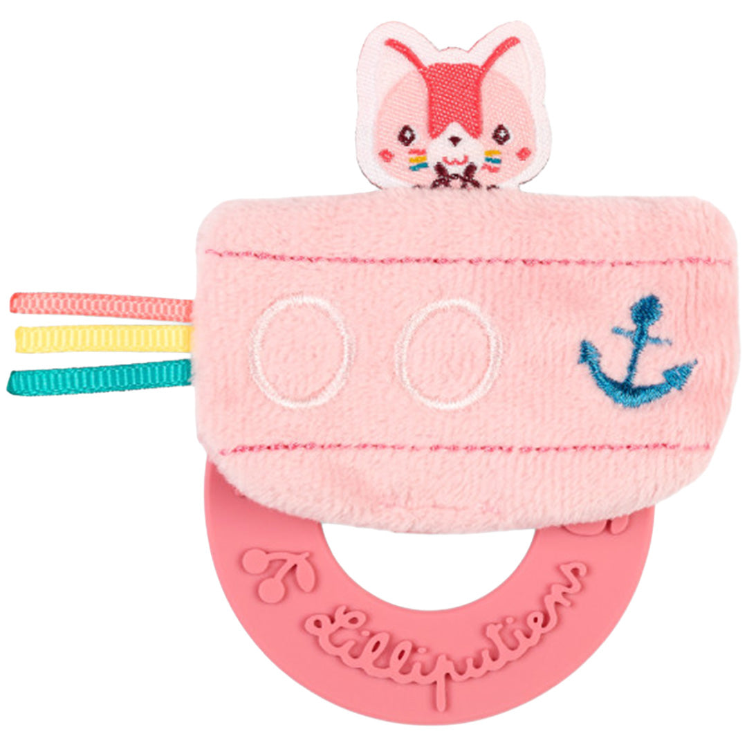 Het is even slikken wanneer een bij een klein kind de tanden gaan doorkomen, maar hij zal het moeten doorstaan. Als iets helpt om de pijn te verlichten, dan is het wel afleiding. Deze bijtring heeft een bootje met een anker eraan hangen, met daarin Jeanne de kat.
