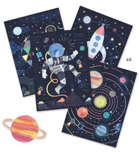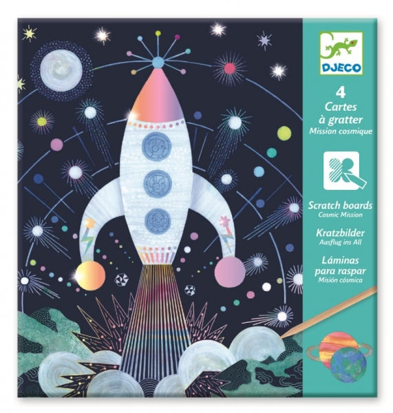 Kras met de kraspen over de tekeningen en kijk welke kleuren en verrassingen er tevoorschijn komen. Met metallic effect. vanaf 6j.