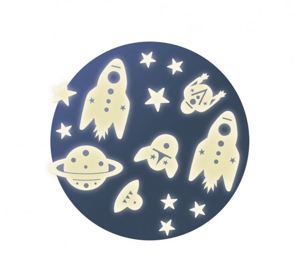 Maak van je kamer een echte ruimtevaardkamer! Je kan de figuurtjes een eigen plek geven door ze met aangebracht klevertje op te hangen. Lichtgevend in het donker.
