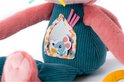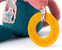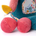 Ze knispert, rinkelt, heeft een spiegeltje, een bijtring, lintjes en is gemaakt van zacht materiaal met een hoog knuffelgehalte. Zithoogte is 29 cm.