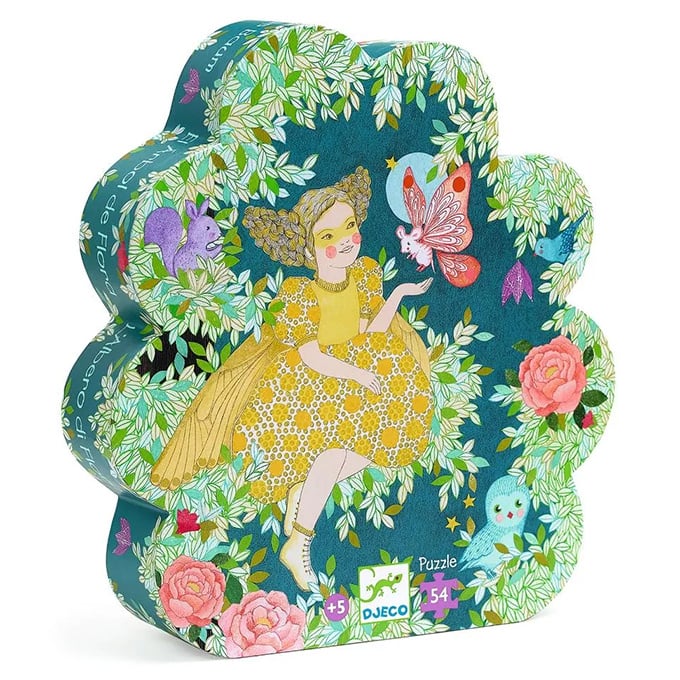 Op deze prachtige puzzel van het Franse merk Djeco zie je een lieve fee in een boom vol dieren. De puzzel bestaat uit 54 stukjes en is verpakt in een mooie kartonnen doos in de vorm van een boom.