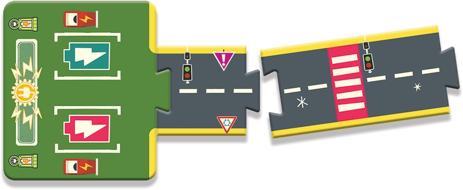 De puzzel bestaat uit 26 grote stukken, die zo gemaakt zijn, dat kleine handjes ze goed kunnen vastpakken. De mogelijkheden om de stukken te combineren zijn eindeloos: je kunt elke keer een ander soort autoweg maken, die trouwens heel geschikt is voor de Crazy Cars van Djeco. Na afloop parkeer je de auto's in de garage.