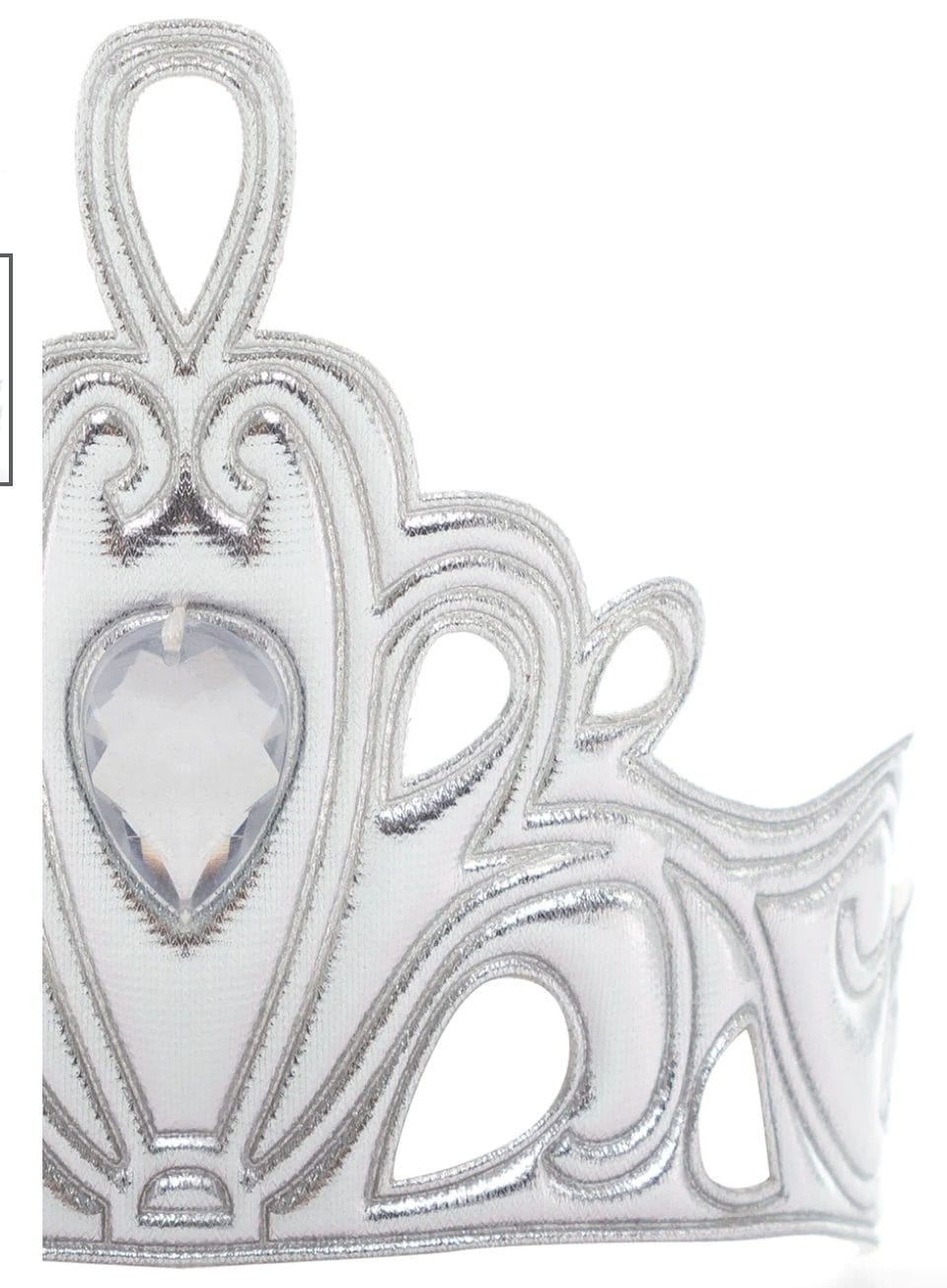 De kroon heeft een elastische band voor een veilige pasvorm en is versierd met een zilveren fonkelende juweel.