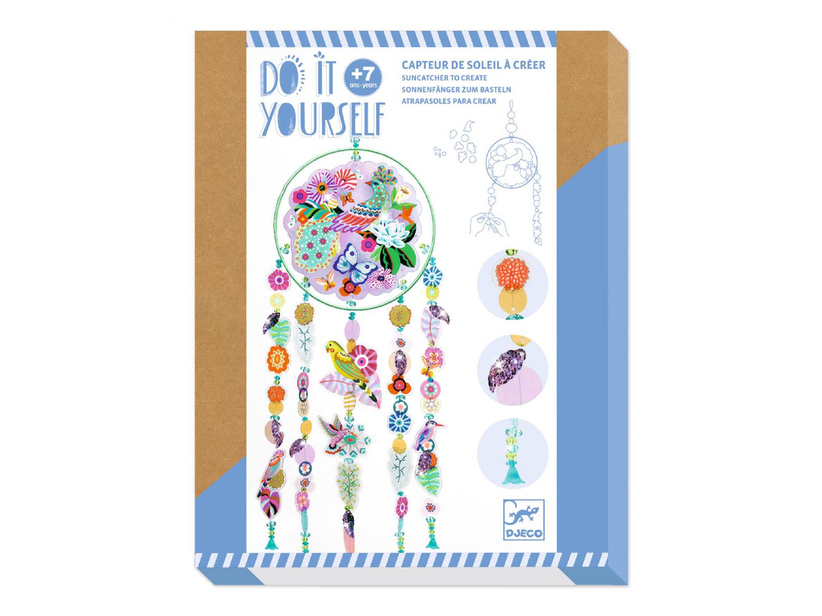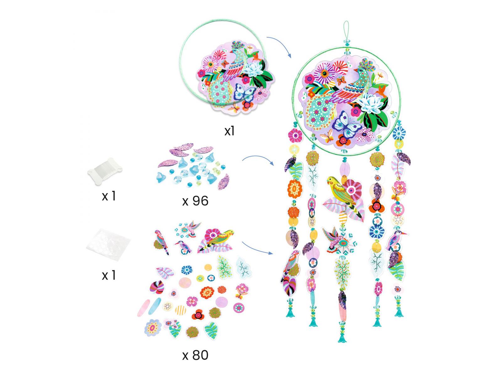 'Suncatcher Paradise Bird' van het Franse kwaliteitsmerk Djeco is een complete knutselset om een poëtische zonnevanger mee te maken.